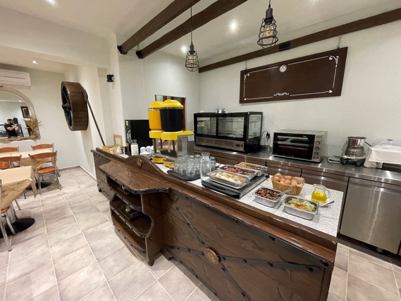 Στους επισκέπτες μας προσφέρουμε πλούσιο πρωινό σε μπουφέ όπου χρησιμοποιούμε την καλύτερη ποιότητα προϊόντων, τοπικών και μη.